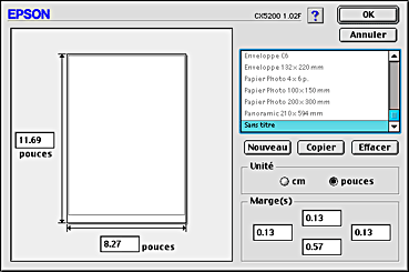 Choisissez le format de papier à utiliser. Si vous souhaitez définir une taille de papier personnalisée, reportez-vous à la section Définition d'un format de papier personnalisé.