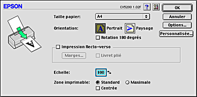 Sélectionnez Format d'impression dans le menu Fichier de votre application. La zone de dialogue Format d'impression s'affiche.