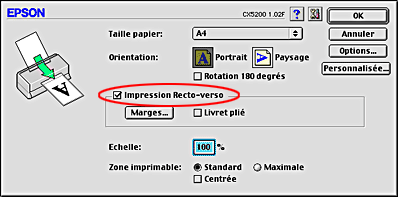 Cochez la case Impression Recto-verso pour imprimer sur les deux faces du papier. Cochez la case Livret plié pour réaliser des livrets à simple pli. Pour plus de détails, reportez-vous à la section Impression sur les deux faces du papier.