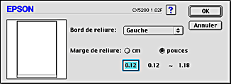 En fonction de votre application, la marge de reliure réelle peut différer des valeurs spécifiées. Essayez avec quelques feuilles pour examiner le résultat avant d'imprimer de gros volumes.