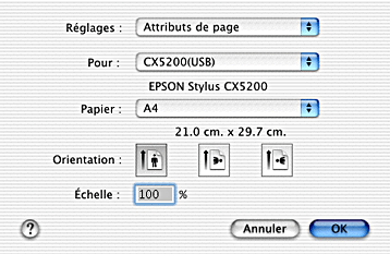 Sélectionnez Format d'impression dans le menu Fichier de votre application. La zone de dialogue Format d'impression s'affiche.