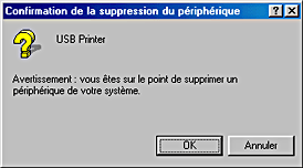 Dans la rubrique Autres périphériques, sélectionnez USB Printer ou EPSON Stylus CX5200 puis cliquez sur Supprimer. Cliquez ensuite sur OK.