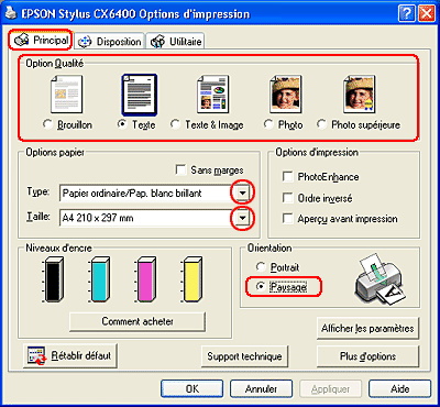Sélectionnez Stylus CX6400 pour le paramètre Pour.