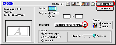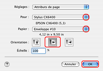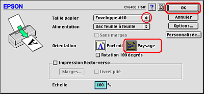 Sélectionnez la taille d'enveloppe appropriée pour le paramètre Papier.