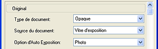 Sélectionnez " Photo " ou " Document " dans la liste Type d'exposition auto. |