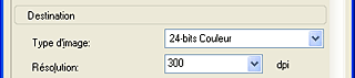 ![]() | Spécifiez les paramètres de la zone Destination correspondant au fichier image résultant souhaité. |