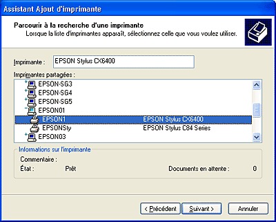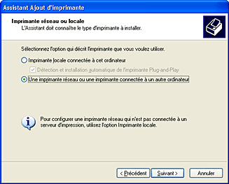 Cliquez sur Imprimante réseau, puis sur Suivant.