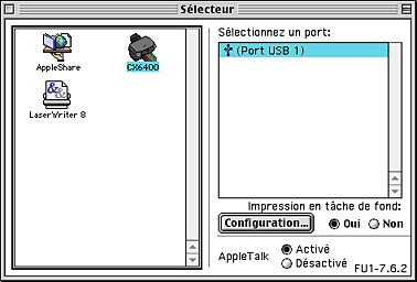 Choisissez Sélecteur dans le menu Pomme et cliquez sur l'icône du combiné multifonction, puis sélectionnez le port auquel il est connecté.