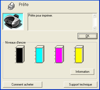 Vous pouvez contrôler la quantité d'encre restante dans les cartouches à l'aide de l'utilitaire EPSON Status Monitor 3 ou de la barre de progression. Pour plus de détails, veuillez vous reporter à la section appropriée ci-dessous.