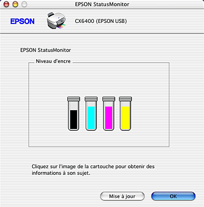 Cliquez sur le bouton EPSON StatusMonitor. La zone de dialogue EPSON StatusMonitor s'affiche.