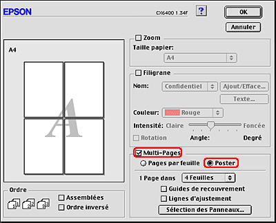 Activez la case à cocher Multi-Pages puis sélectionnez Poster.