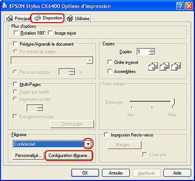 Impression du filigrane sous Windows