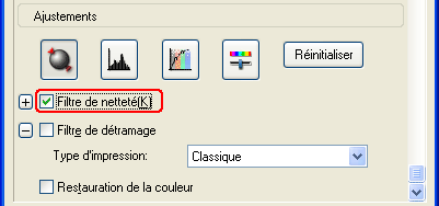 Activez la case à cocher Filtre de netteté dans la zone Ajustements.