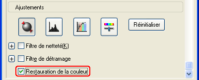 La fonction Restauration des couleurs incluse dans le logiciel du scanner permet de restaurer les photos dont les couleurs ont passé. Activez la case à cocher Restauration des couleurs pour restaurer les couleurs en Mode loisirs ou en Mode professionnel.