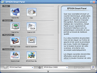 EPSON Smart Panel se lance et la fenêtre suivante s'affiche.