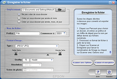 Cliquez sur Scan and Save pour lancer la numérisation ou sur Scan with Options pour modifier les paramètres de numérisation.
