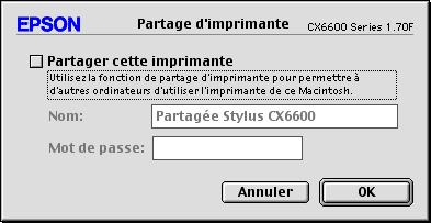 Le paramètre Partage d'imprimante constitue une fonction standard de Mac OS X 10.2 ou plus récent.