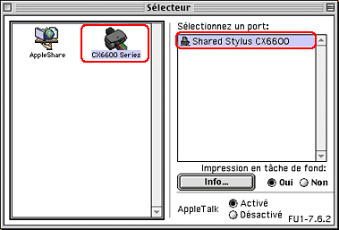 Choisissez Sélecteur dans le menu Pomme et cliquez sur l'icône du combiné multifonction, puis sélectionnez le port auquel il est connecté.