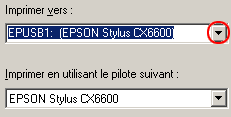 Si la mention EPUSBx : (EPSON Stylus CX6600) apparaît dans la zone de liste Imprimer vers, le pilote d'impression USB et le logiciel d'impression sont correctement installés. Si le port adéquat n'est pas affiché, passez à l'étape suivante.