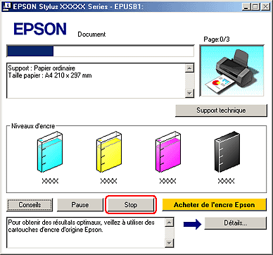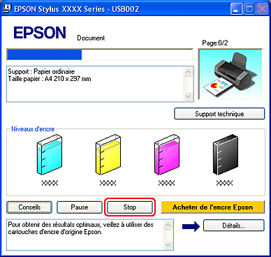 Cliquez sur le bouton Stop pour annuler l’impression.