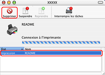 Cliquez sur le bouton Supprimer pour annuler le travail d'impression.