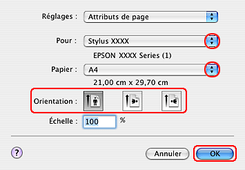 Sélectionnez les paramètres Papier et Orientation adaptés.