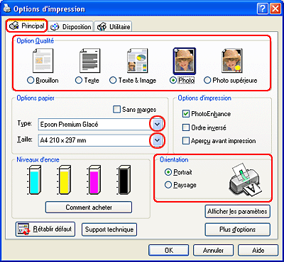 Photo supérieure pour obtenir une qualité d’impression optimale