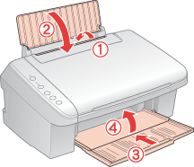 Fermez la protection du chargeur, le guide papier et le bac de sortie.