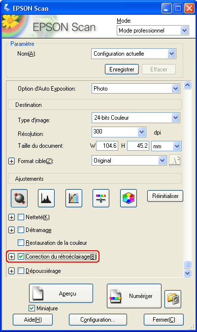 Procédez comme suit pour corriger les photos présentant un rétroéclairage à l'aide de Epson Scan.