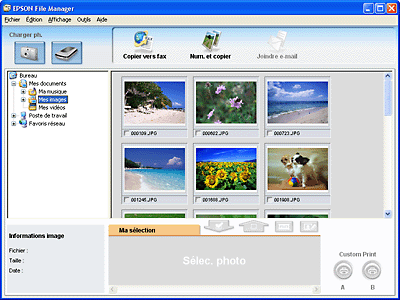 Si les images numérisées ne s'affichent pas, sélectionnez le dossier dans lequel vous les avez enregistrées sur le côté gauche de la fenêtre de Epson File Manager.