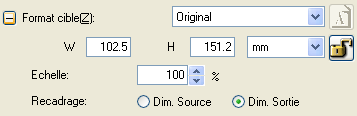 En Mode professionnel, vous pouvez ajuster la taille de manière détaillée à l'aide d'outils supplémentaires. Cliquez sur le symbole + (Windows) ou (Mac OS X) situé à côté du paramètre Taille cible pour afficher ces outils.