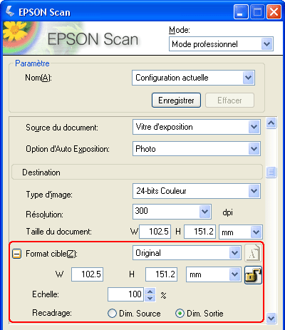 Pour plus d'informations au sujet de l'utilisation des outils Format cible, cliquez sur Aide dans la fenêtre de Epson Scan.