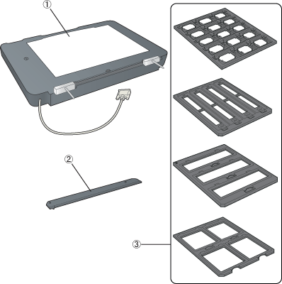 ) permet de numériser des films et des diapositives en couleur. Une fois le lecteur de transparents installé, vous pouvez le laisser en place même lorsque vous souhaitez effectuer des numérisations de documents normaux (sur papier).