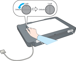 Avant d'installer le lecteur de transparents, vous devez déverrouiller le verrou de transport.