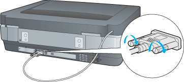 Branchez le connecteur du lecteur de transparents sur le connecteur optionnel situé à l'arrière du scanner.
