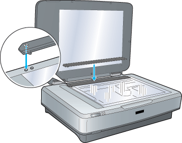 Retirez le cache pour documents opaques du lecteur de transparents comme illustré ci-dessous.