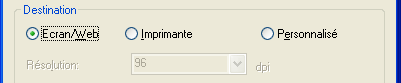 Lorsque vous voulez numériser des images dans le but de les afficher sur l'écran d'un ordinateur, réglez la résolution de sortie sur 96 dpi. L'écran ne peut reproduire les images qu'à 96 dpi au mieux. Numériser avec une résolution élevée ne servirait à rien. Les fichiers image de faible résolution sont plus petits et plus faciles à gérer. C'est pourquoi il est préférable d'utiliser une faible résolution pour numériser des images destinées à être utilisées sur Internet ou jointes à des courriers électroniques.
