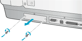 À l'aide d'un tournevis cruciforme, retirez les deux vis de fixation de la plaque de protection de l'emplacement d'interface en option, puis retirez la plaque. Conservez les deux vis car elles seront nécessaires si vous réinstallez la plaque de protection.