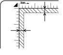 Une marge d'environ 1,0 ± 0,5 mm à partir du guide horizontal et du guide vertical n'est pas numérisée.
