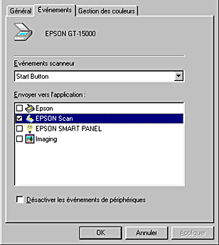 Certaines applications ne prennent pas en charge une association aux scanners et appareils photo numériques. L'association n'est possible qu'avec les applications qui s'affichent dans la liste.