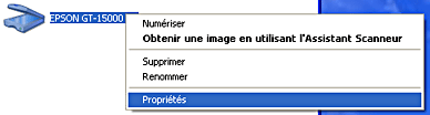 Cliquez avec le bouton droit sur l'icône du scanner et sélectionnez Propriétés.