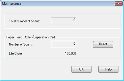 Cliquez sur Reset (Réinitialiser) à droite de Number of Scans (Nombre de numérisations).