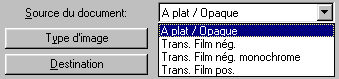 Pour numériser un document opaque placé sur la vitre d'exposition du scanner, gardez l'option A plat pour le paramètre Source du document. D'autres options sont disponibles en fonction du matériel installé. Il s'agit des sources optionnelles Trans. Film nég., Trans. Film nég. monochrome et Trans. Film Pos. (pour l'adaptateur de films).