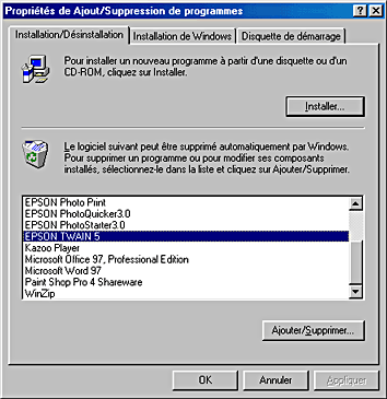 Sélectionnez EPSON TWAIN 5 dans la liste, puis cliquez sur Ajouter/Supprimer.