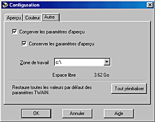 Cliquez sur ce bouton pour initialiser tous les paramètres TWAIN et rétablir les paramètres d'usine par défaut.