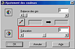 ![]() | Pour modifier le niveau de Balance des gris de la couleur sélectionnée, déplacez le curseur vers la gauche ou la droite ou entrez une valeur dans la zone de texte correspondante. |