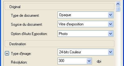 Spécifiez les paramètres Original, Type d'image et Résolution correspondant à vos images.