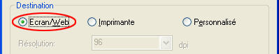 Lorsque vous voulez numériser des images dans le but de les afficher sur l'écran d'un ordinateur, réglez la résolution de sortie sur 96 dpi. L'écran ne peut reproduire les images qu'à 96 dpi au mieux. Numériser avec une résolution élevée ne servirait à rien. Les fichiers image de faible résolution sont plus petits et plus faciles à gérer. C'est pourquoi il est préférable d'utiliser une faible résolution pour numériser des images destinées à être utilisées sur Internet ou jointes à des courriers électroniques.
