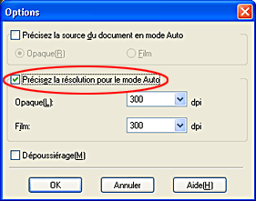 Si EPSON Scan ne parvient pas à reconnaître la source des documents, vous pouvez spécifier le type de document dans la boîte de dialogue Options. Pour plus de détails, consultez l'aide en ligne.