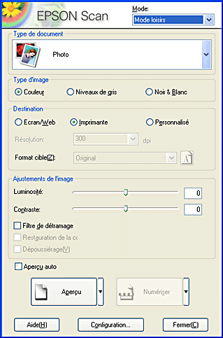 Pour numériser en Mode loisirs des images à afficher sur un écran d'ordinateur, procédez comme suit.